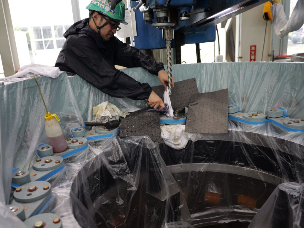 私は以前、明電舎側で⽔⼒発電に取り組んでいた時から、イームルと連携しながら仕事をしていました。明電舎のパートナーとして⾒ていた頃は、優れた「⽔⾞」を作る唯⼀無⼆の技術集団でした。しかし、実際に組織の内側に⾝を置き、設計、製造、検査といったあらゆる⼯程に携わる仲間たちと向き合うなかで、そのイメージは「形」から「⼈」に⼤きく変わりました。「外から⾒ていたイームル」と「中で知るイームル」のギャップこそが本当の価値であり、深みなのだと 感じています。