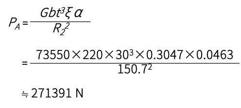 次の仕様の竹の子ばねの荷重[P]=300000N時のタワミ、応力[τ]を求める。